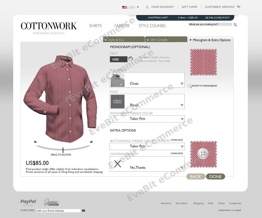 在全球电商快速发展的早期阶段,EveBit eCommerce 即已率先布局开源电商技术领域。2008年,我司为面向全球市场的 CottonWork 定制衬衫品牌打造大型跨境电商平台,这也是我们在亚太地区最早交付的 Magento 项目之一,具有重要的行业里程碑意义。